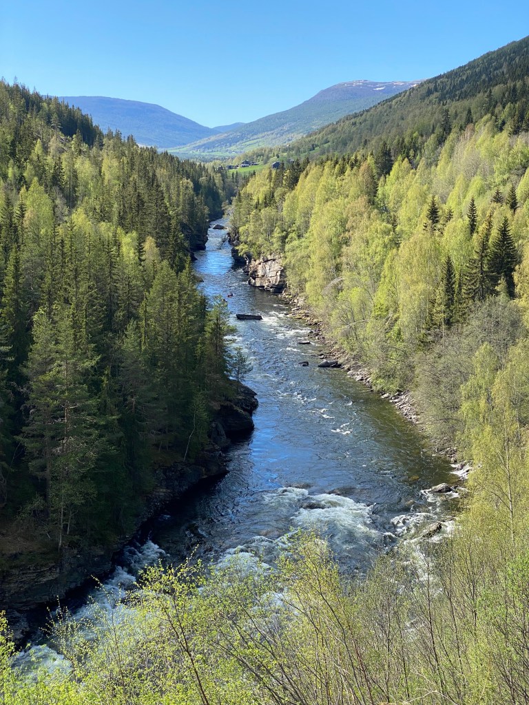 Heidal is a valley on the threshold to some of Norways national parks, with mountain farms scattered around in the slopes around the Sjoa river. The river is popular for rafting, and you might spot some activity as you get some views into the deep gorge carved out by the water streams.