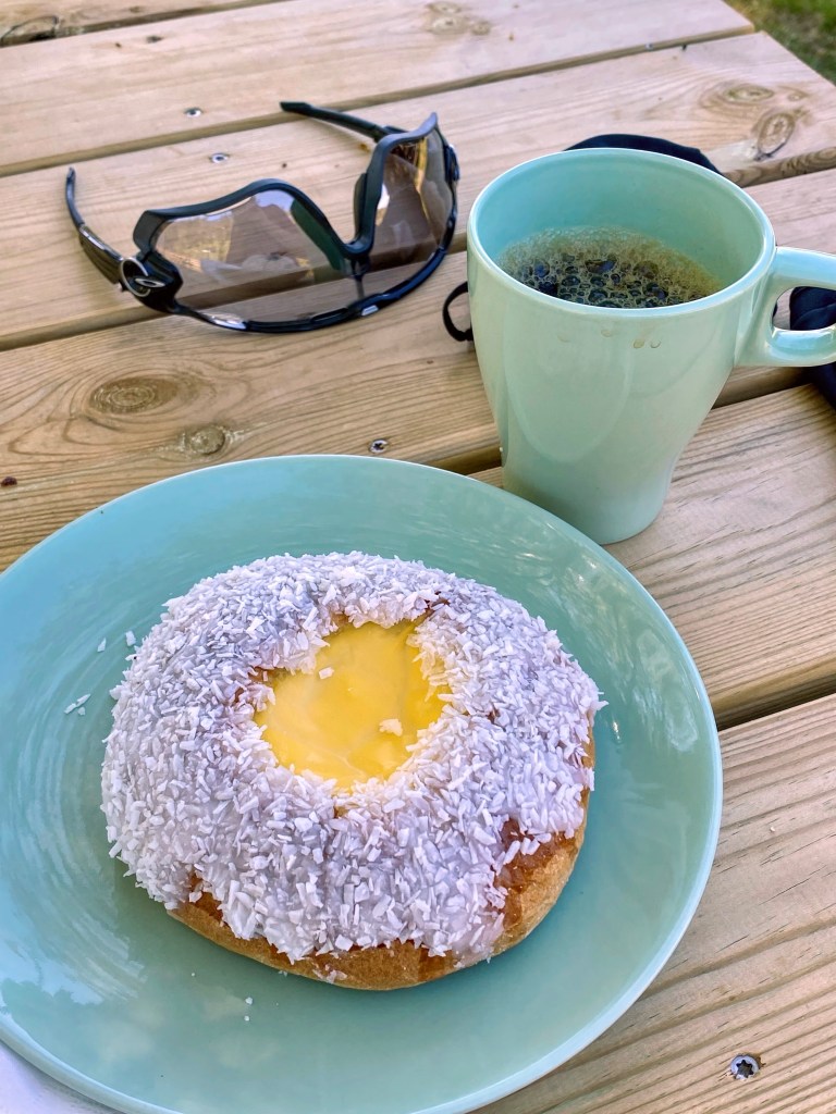 After this loop in the mountain, it is time for some refuel. One possibility is to visit Heidal Ysteri, a café serving food made with the local cheese. especially its renowned brown cheese Heidalsost. They also serve some tasty pastries, like the “skolebrød”, with vanilla cream in the middle, and a coconut drizzle around.